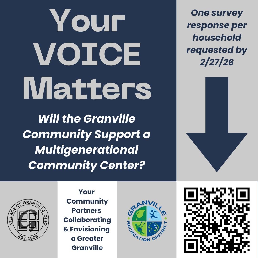 GRANVILLE COMMUNITY MEMBERS: In late 2025, the Village of Granville and the Granville Recreation District began an exploratory study to determine the viability of a multigenerational community center within the greater community. Public input is a vital component of this study. Please take a few minutes to complete this survey. Your feedback will help inform the community's next step with this initiative.